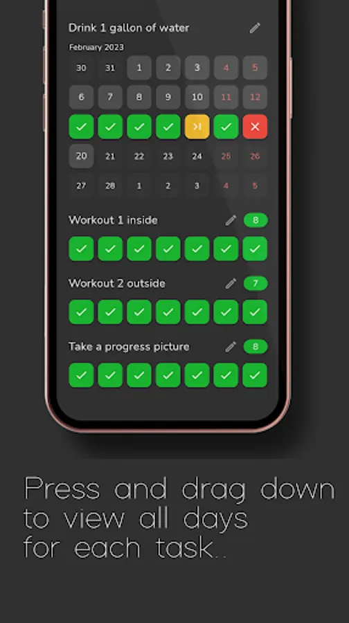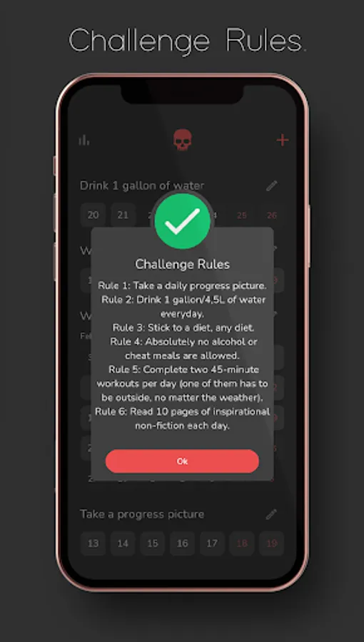 75 Hard is a tool designed to help individuals complete the 75 Hard challenge. It helps you keep track of your daily tasks while doing the fitness program. It will help you develop discipline, willpower and a strong mindset.