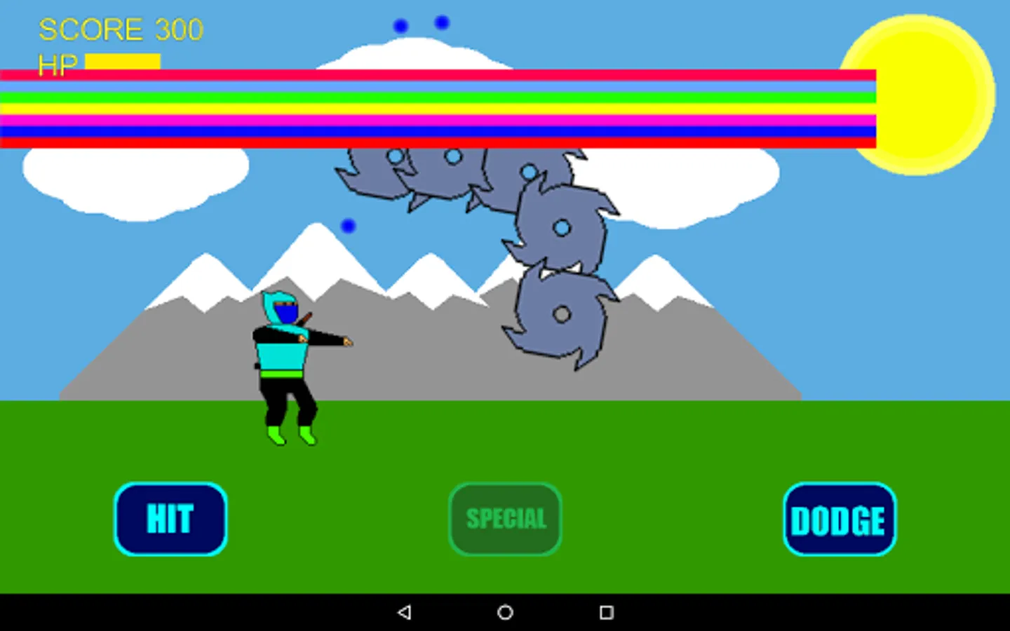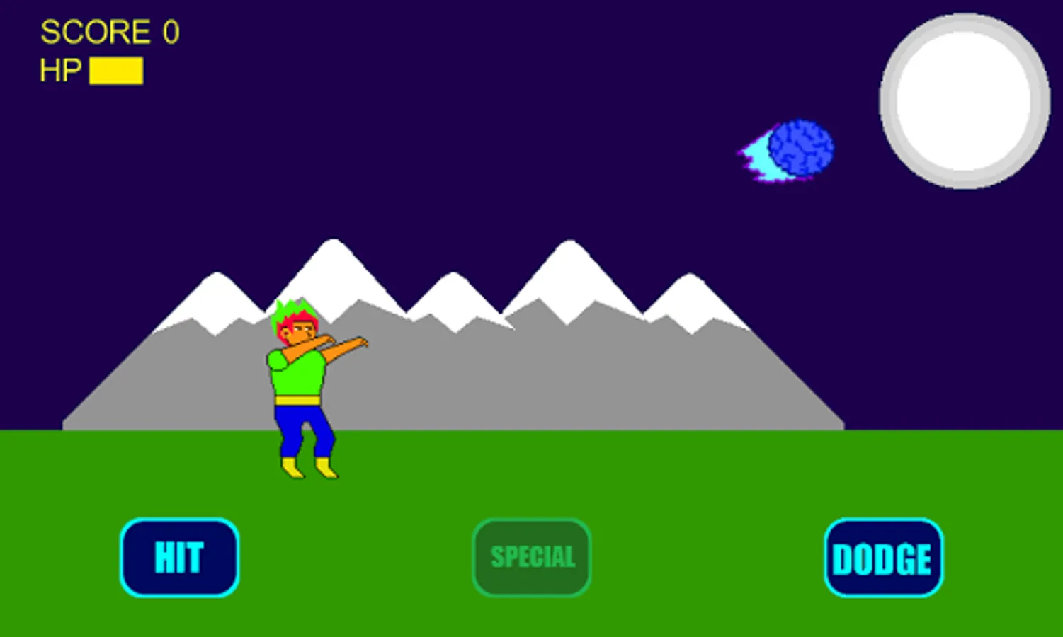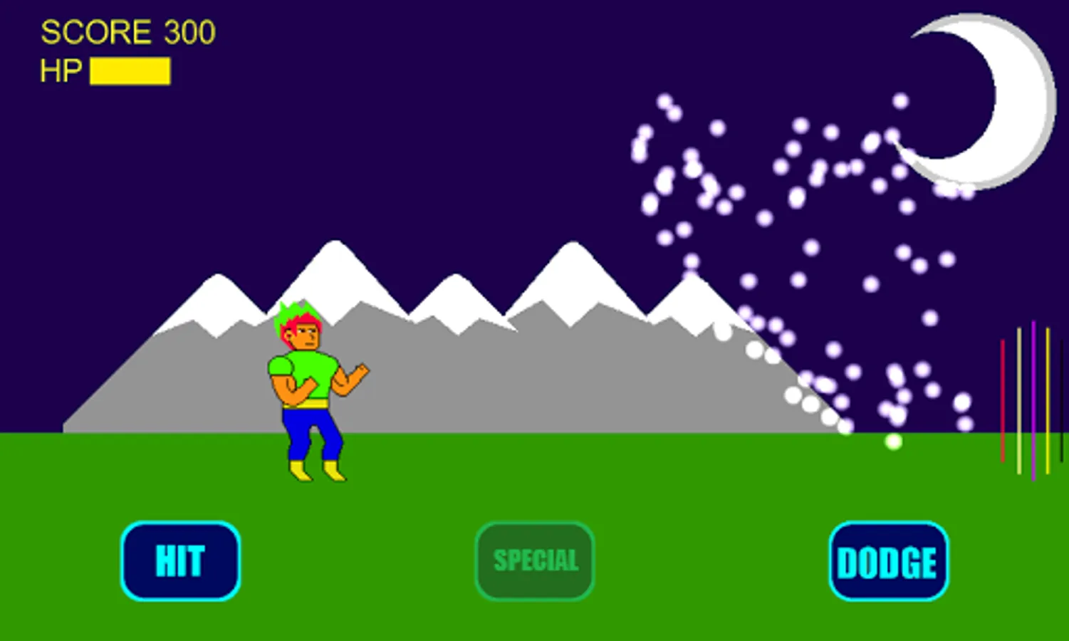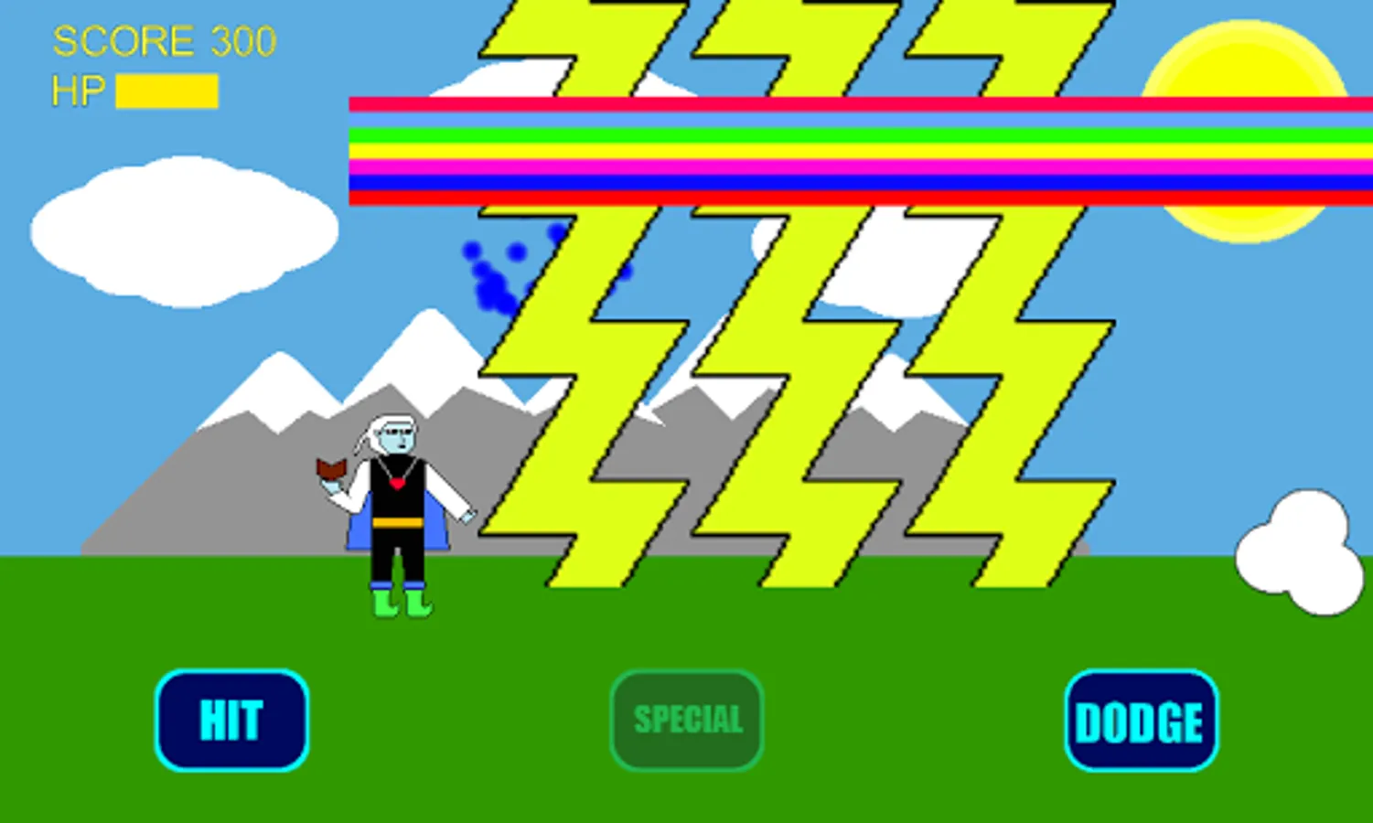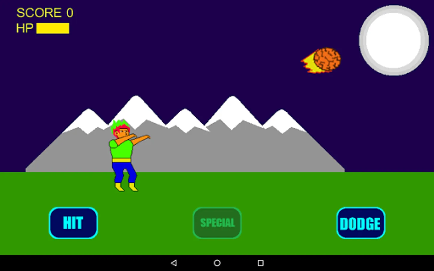 Rainbow Meteor is a challenging arcade game where you can choose from a variety of characters to defend against a meteor shower by using their abilities to hit or dodge meteors based on their color. Hit brown, blue and ice meteors. Dodge grey, yellow, fire and lightning meteors. Special attacks work on any type of meteorite. Rainbows can change the color of meteorites. Being on the receiving end of a meteor impact while in an idle position or hitting/dodging the wrong meteors results in losing HP/hit points and allowing your HP to reach zero will result in gameover. Rainbow Meteor is a very hard game that requires great reflexes, reactions and focus in order to succeed.