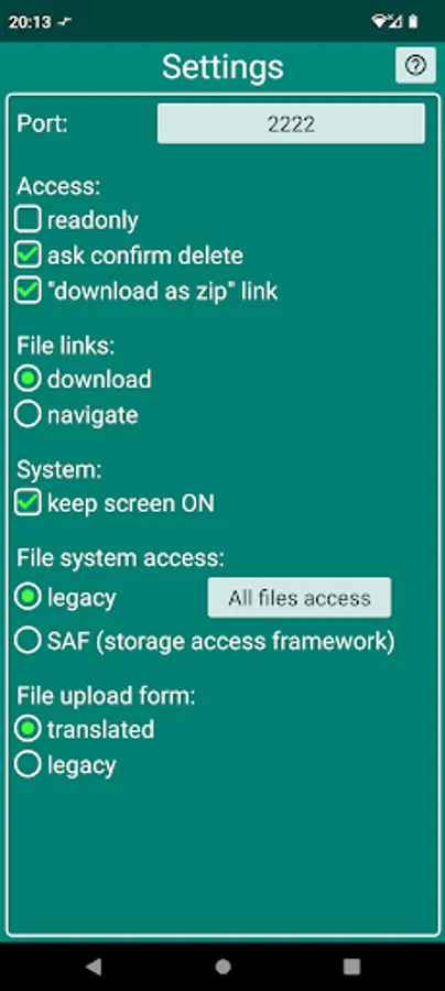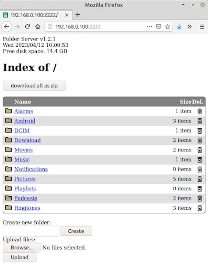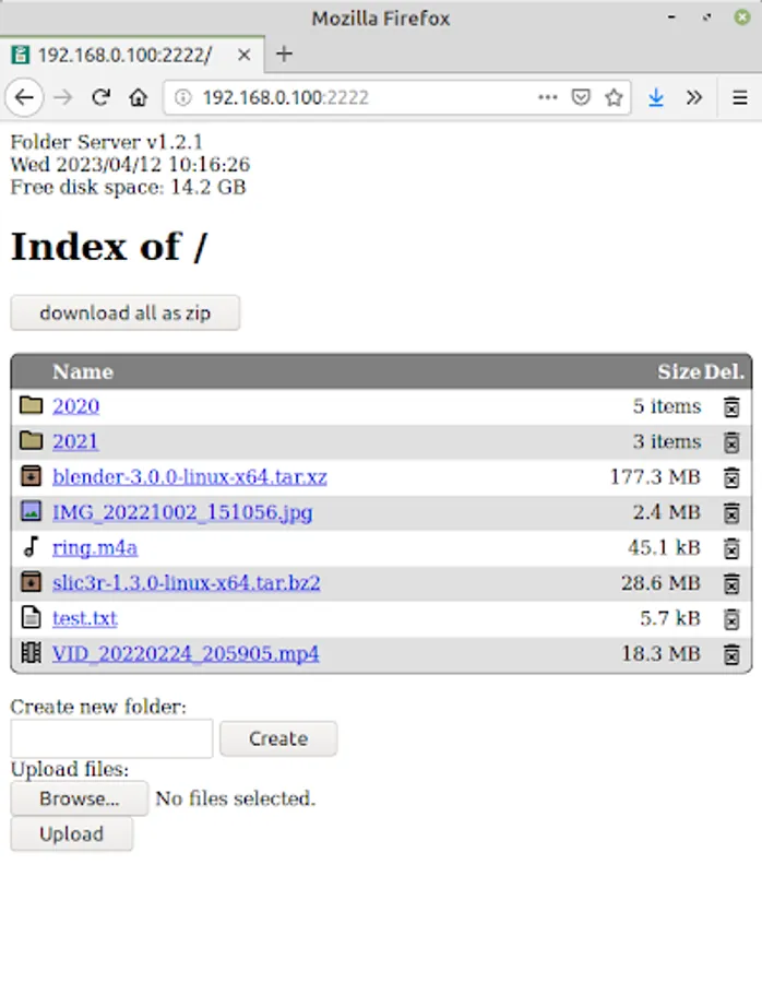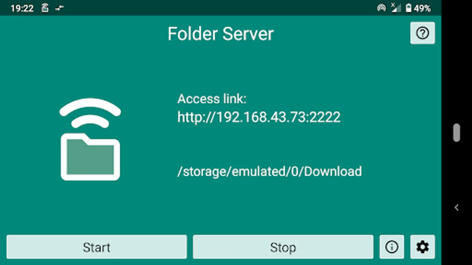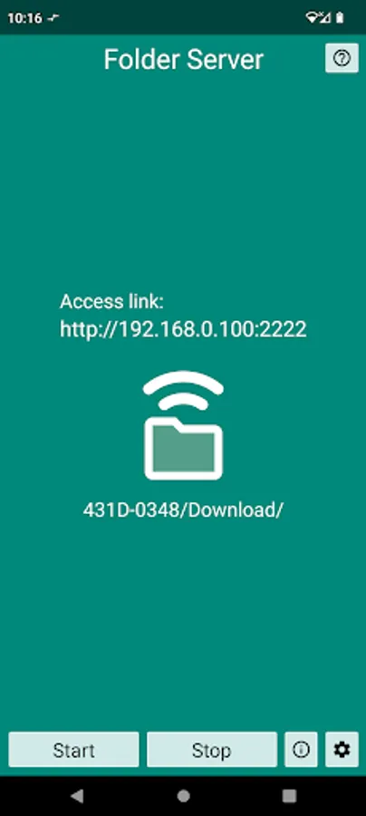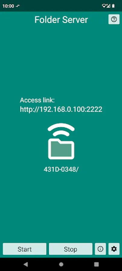 The folder is accessible via web browser. The access link is displayed in the app. when the server is started.