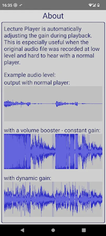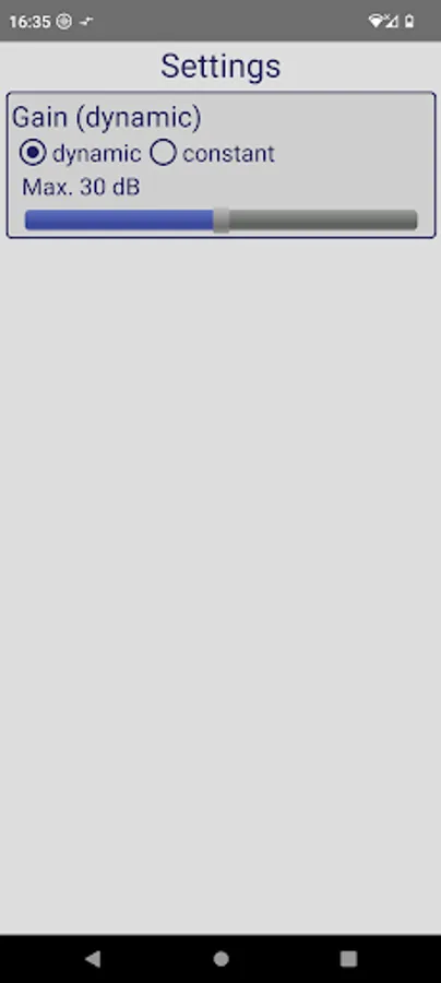 Loud sound and / or prolonged exposure to loud sound can cause permanent damage to your ears, headphones and / or device speaker. Set your device audio volume to a safe level that is not too loud. In the app settings there are two options: dynamic gain and constant gain. If you choose constant gain and hear distorted sound, make sure to reduce the amplification level (dB) using the slider. When using headphones, you may be unable to notice surrounding sounds. Make sure this app does not distract you from important sounds around you.