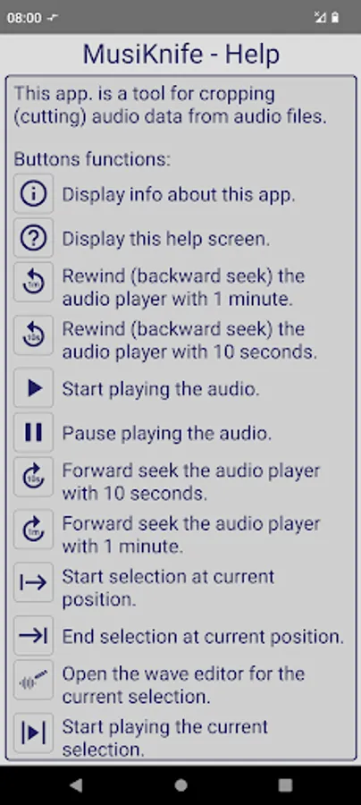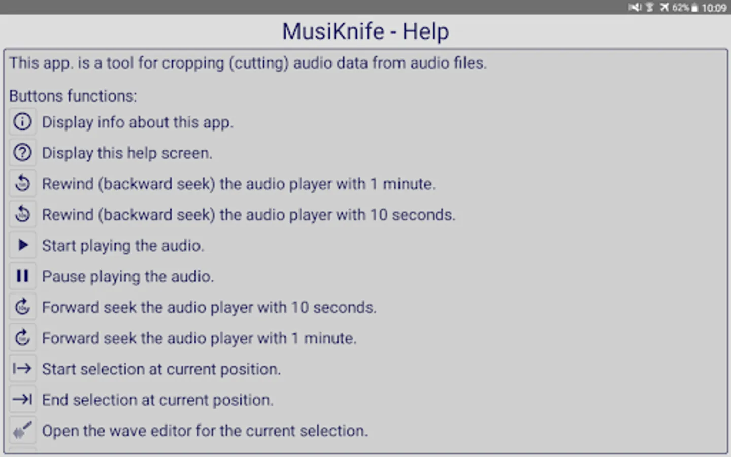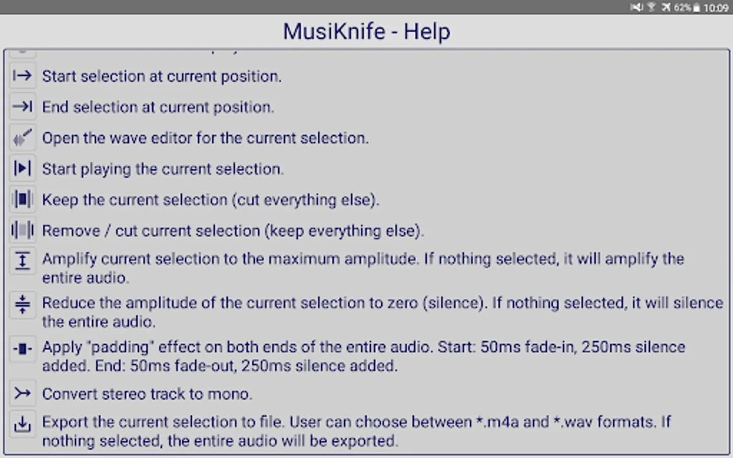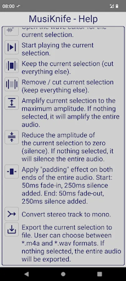 App. can also be launched by audio file open / edit intents or by sharing an audio file to it.