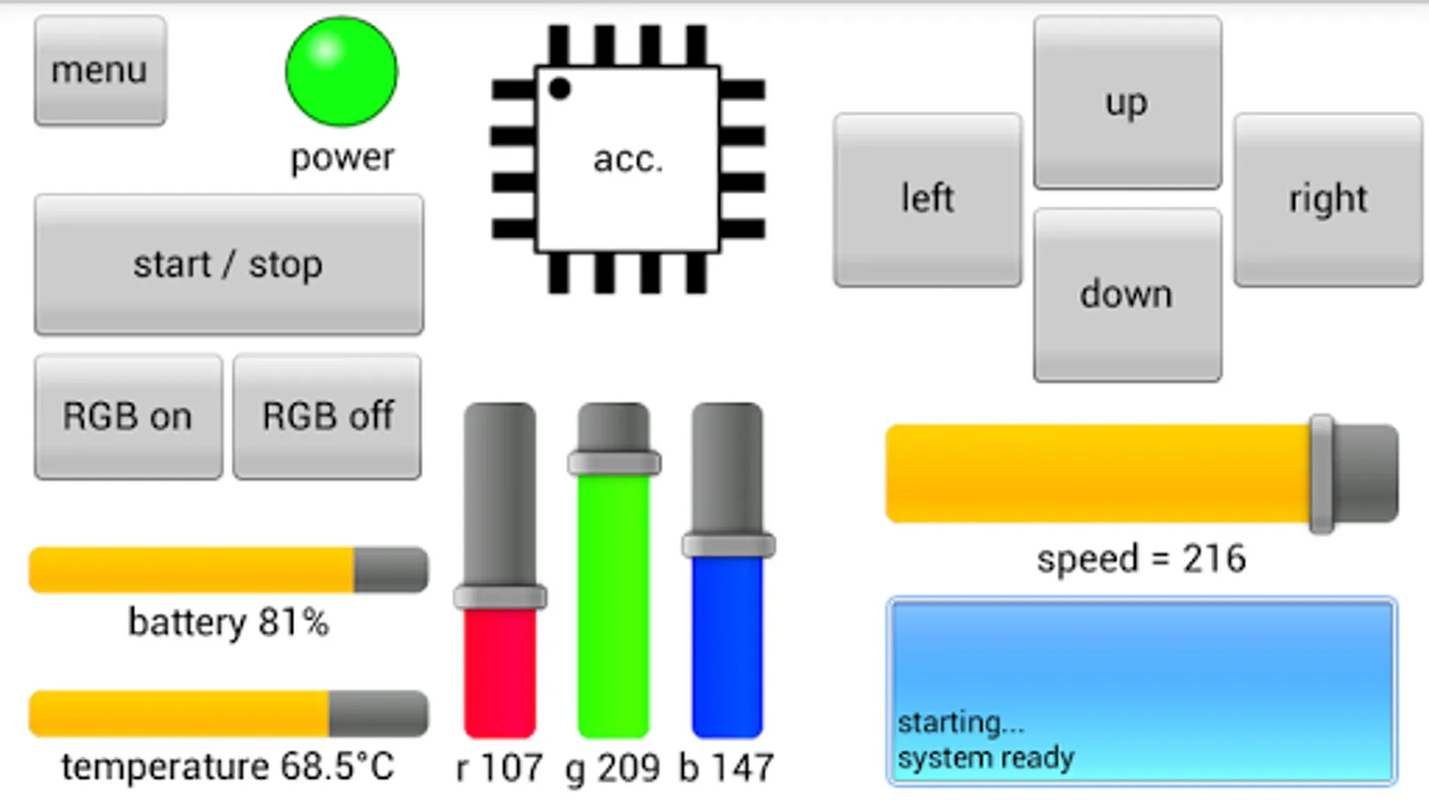 In-app editor: add buttons, sliders, LEDs, etc. Control digital and analog pins of Arduino, ESP8266, RPi, etc. Plot real-time data from sensors.
