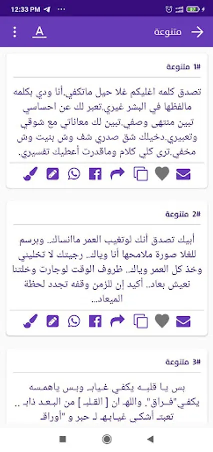It offers the best and newest words, tweets, publications and posts for Facebook, Twitter, WhatsApp and all social networking sites to exchange love between friends, loved ones and brothers by browsing the suit you want and copying and pasting the status wherever you want, all from within the application only.