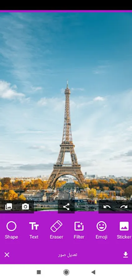 The application of merging and modifying images offers other very amazing advantages that enable its users to benefit from it for free, as it has the ability to make photo collages and add text effects at the same time in addition to filters. Arabic .
