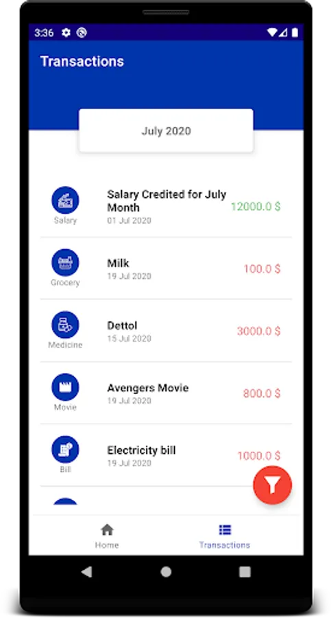 Your expense data will be store in your device under the most secure database, No one can access your data. This application is 100% free with all the features listed below: