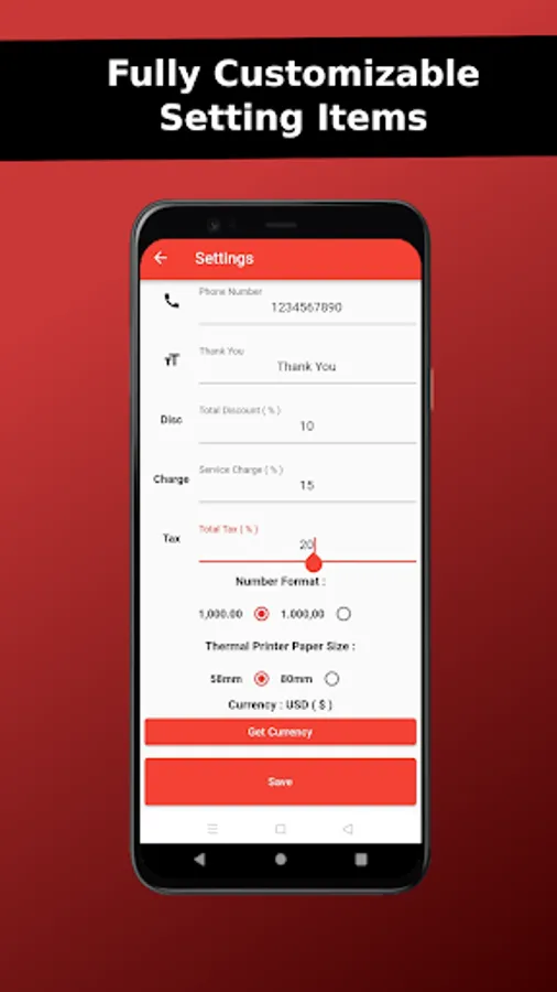 Once your thermal bluetooth printer connected, just print your receipt in one button without any hustle.