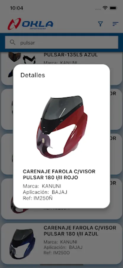 Catalog of products marketed by Importadora Okla. This application is for the exclusive use of the company's commercial force.