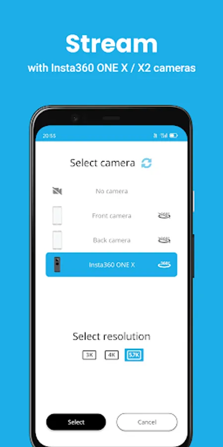 • Capture your environment with any of the compatible cameras Insta360 ONE X or X2