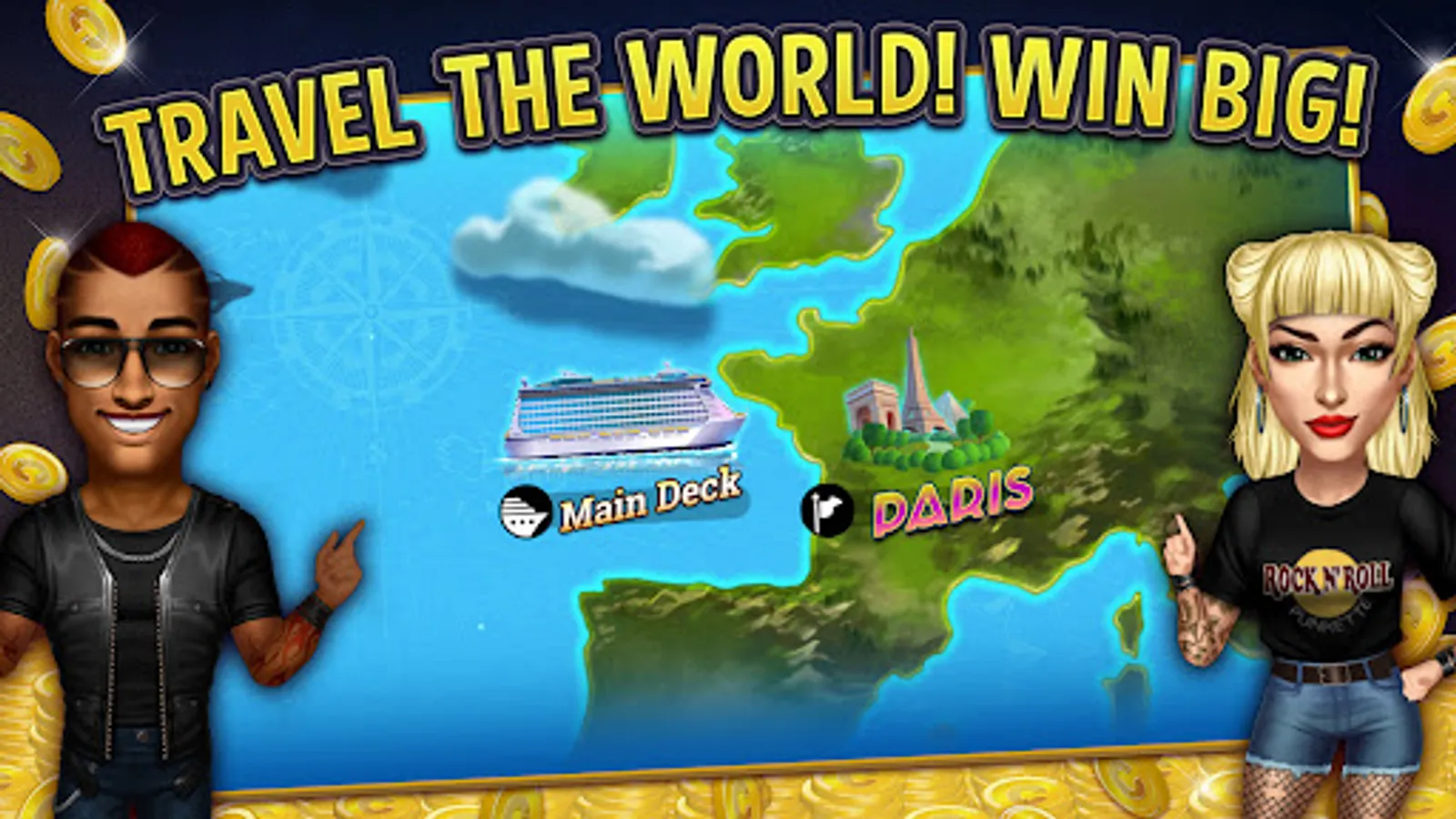 In Hard Rock World Tour, you are on the ULTIMATE VACATION! Journey to new, exciting, and special destinations! So, what are you waiting for? Pack your bags because it’s time to leave port and there will be no delays! Who knows where you’ll go next? Play all the best free games — choose from over 27 Slots, Bingo, Roulette, Solitaire, and MORE! Earn huge special prizes with bonus games! Every time you win in Hard Rock World Tour, Charms boost your winnings — it’s pure magic!