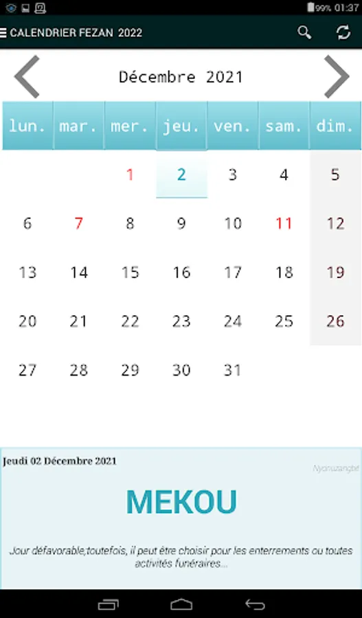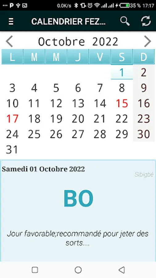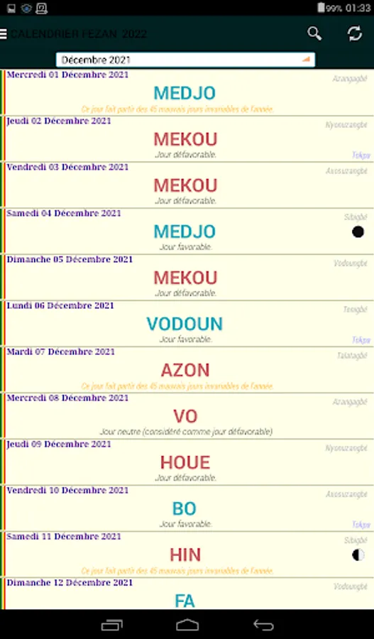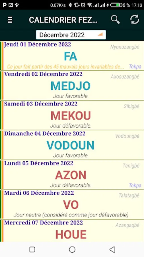 Composed of nine (09) days and like a compass, it guides us and enlightens us in the best choice of days corresponding to each event and moment of life.