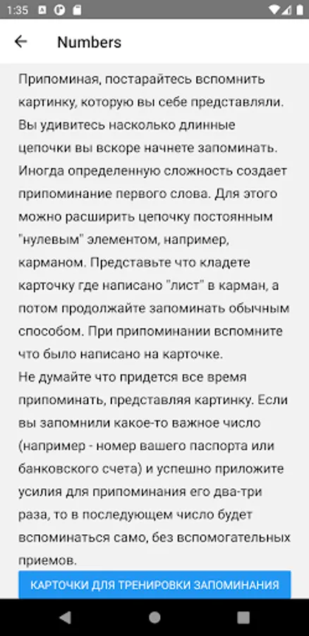 Уверен, что после 15 занятий в этой программе вы разовьете способность мгновенного запоминания сколь угодно больших чисел и номеров.