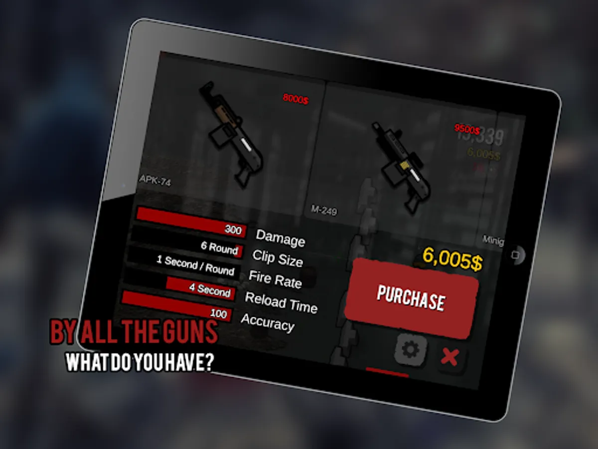 you have a many guns But you have to collect a money from killing a zombies to shopping a new guns or repair your base!