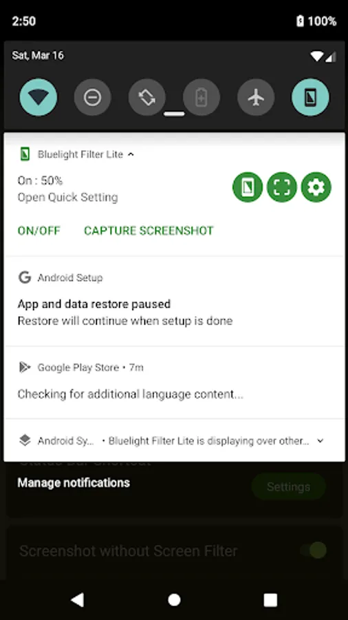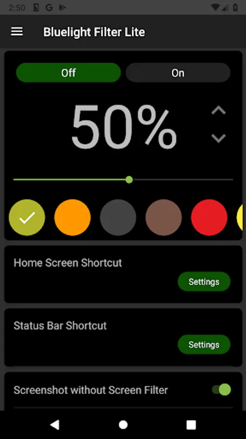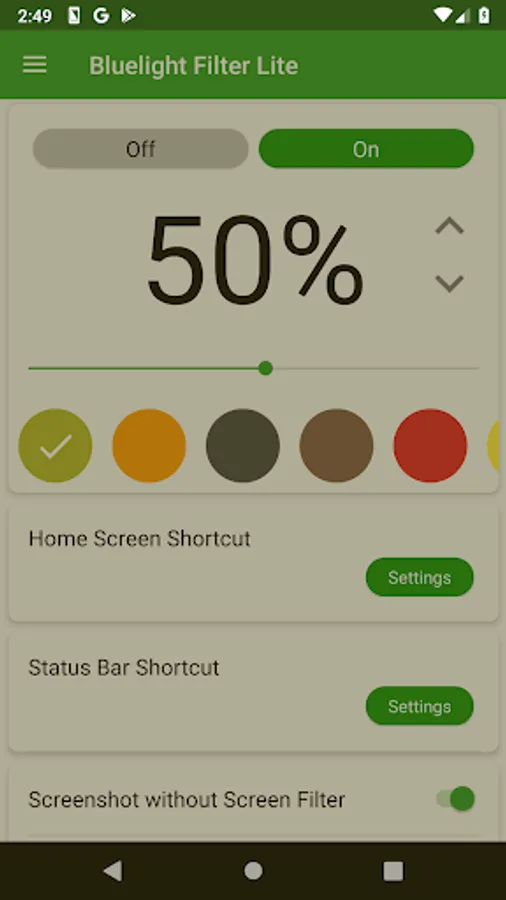 * If other screen adjustment apps are already running on your smartphone or tablet, it may affect the screen color making it too dark for your eyes.