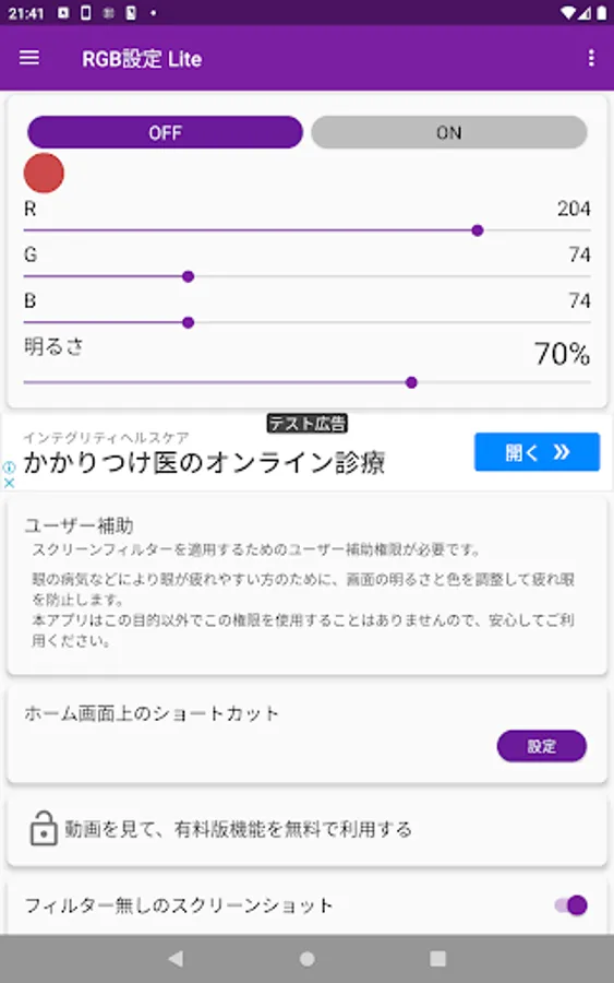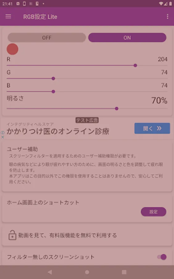 * This app must have the accessibility permission to apply screen filters.