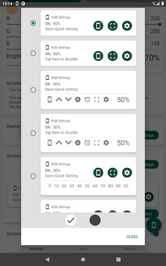 Welcome to RGB Settings, the comprehensive screen filter app that enables you to transform your smartphone's screen color with full control. RGB Settings lets you set the hue of your smartphone screen using an RGB color palette, allowing limitless possibilities for customization.