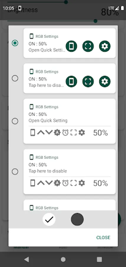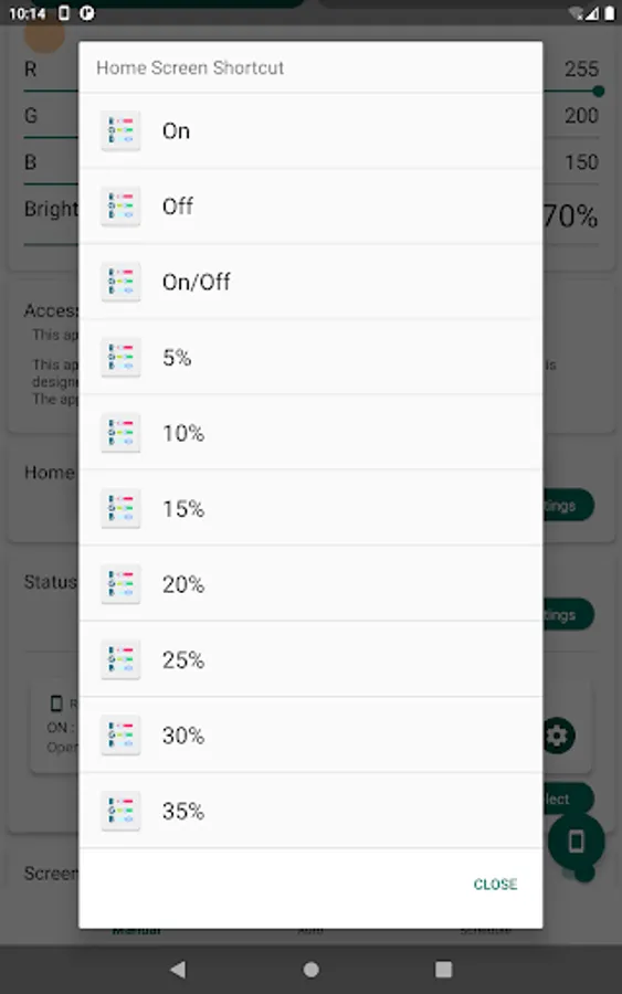 You can access various operations from shortcuts in the notification area, with a variety of shortcut types to choose from. The home screen shortcut also allows for quick and easy operation. The app is designed to be simple and user-friendly, with a Quick Setting Window for speedy color adjustments.