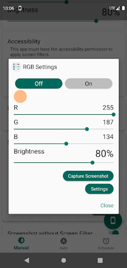 One unique feature of RGB Settings is the ability to take screenshots without the screen filter appearing, providing clean and true-to-color images. Additionally, RGB Settings is designed to be efficient, performing no unnecessary operations. This means that, compared to other screen filter apps, it helps conserve your battery life.