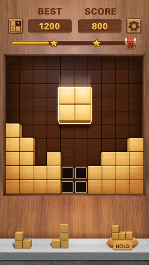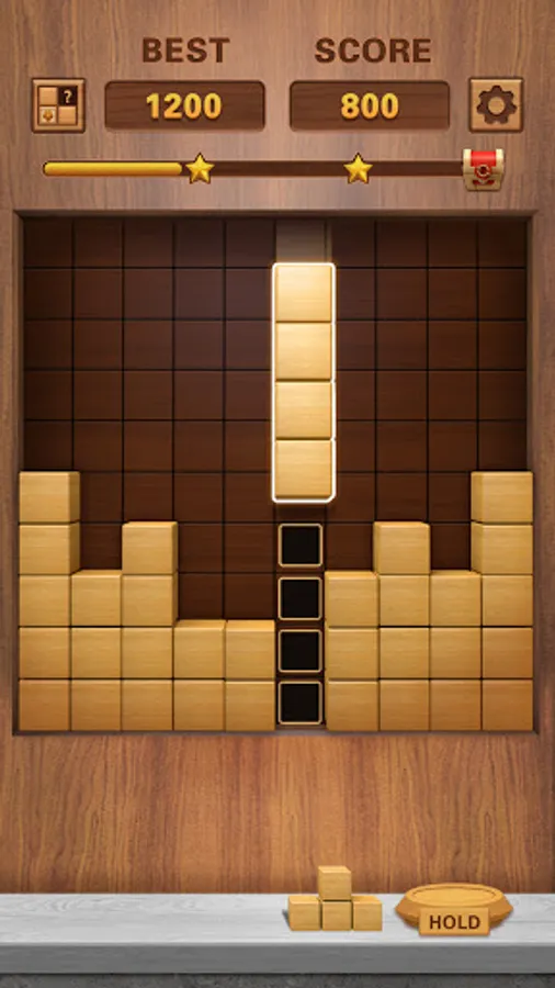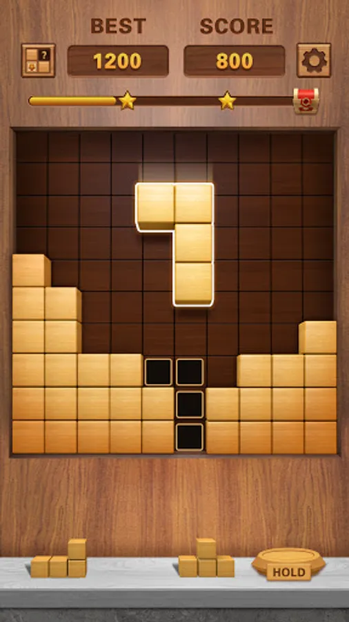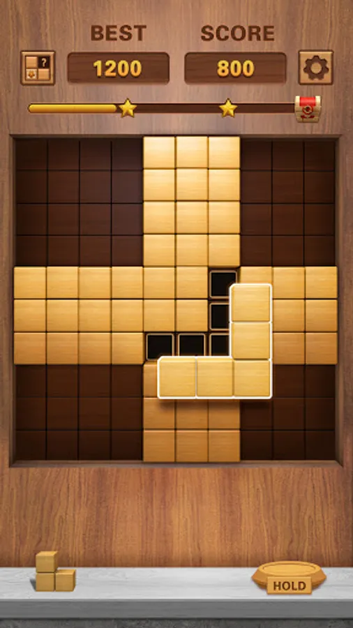 In Wood block puzzle, you can hold every block when you not want to use it, which means you can get higher score if you are good at using this function.