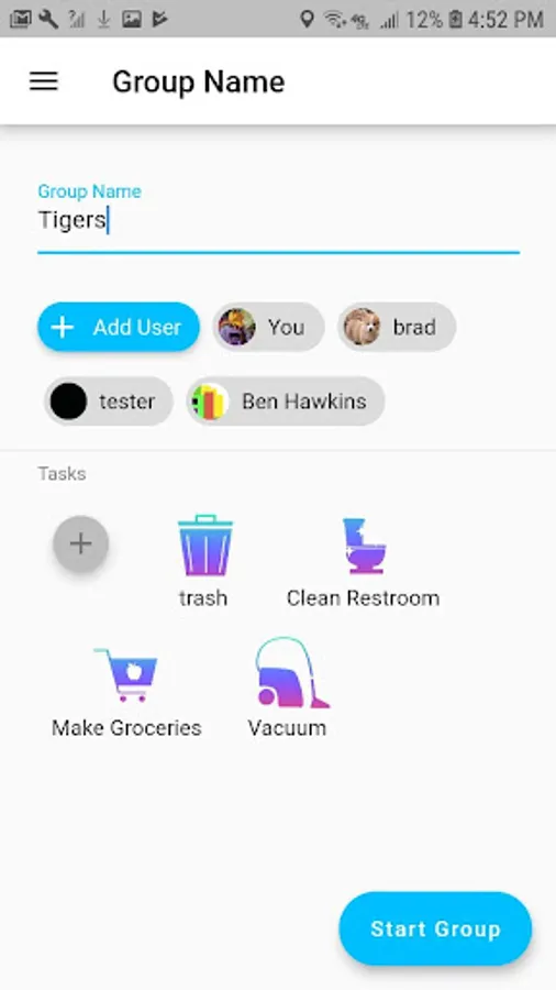 Then create a list of task you'd like the group to complete.