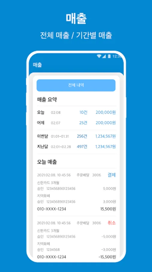 You can view sales by period, number of orders, aggregate order amount, and search sales by payment method.