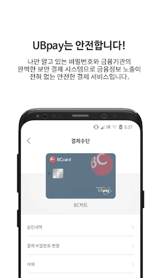 -All card information and bank account information registered in UbiPay are managed directly by each card company and bank, and are safe because they are not stored in any devices or servers other than the corresponding financial companies.