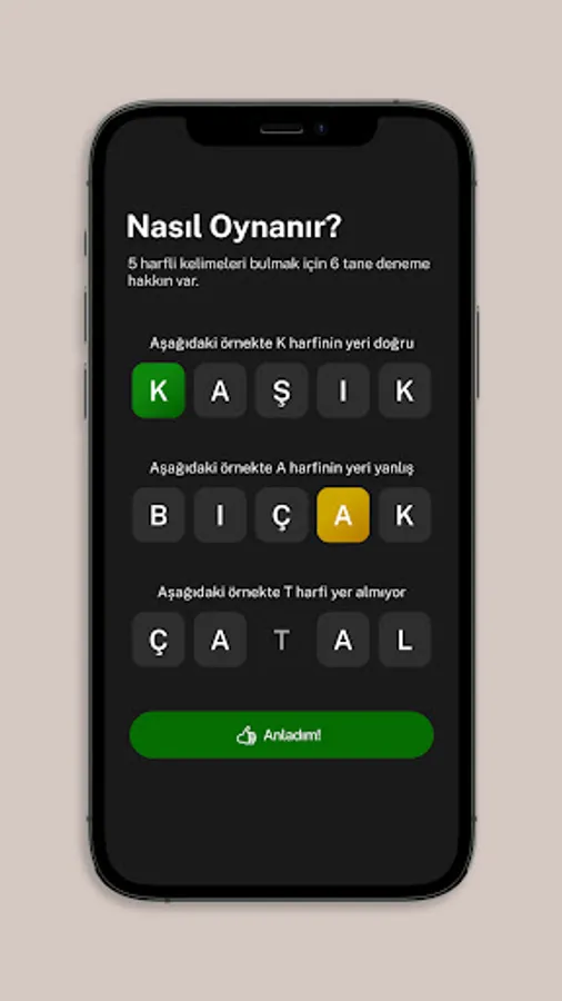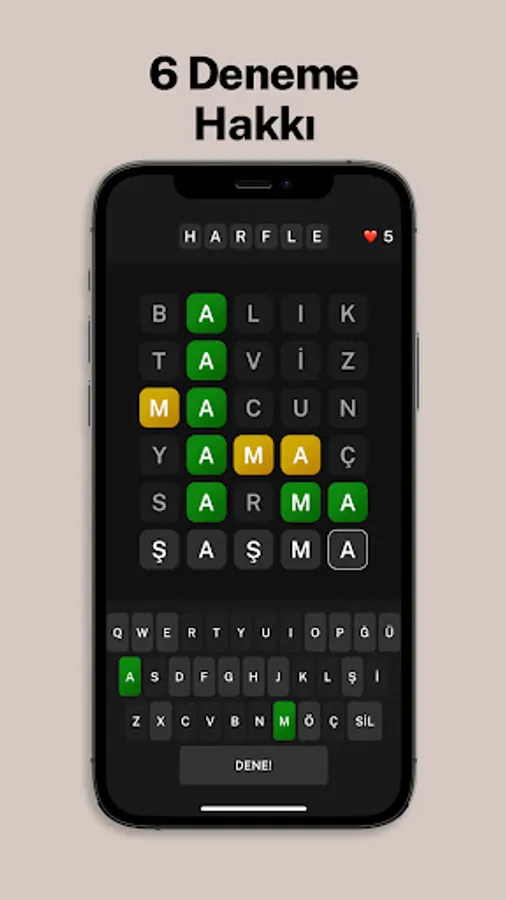 Try to find 5-letter Turkish words in 6 tries. Try to find the right one among thousands of words. And you don't have to wait 24 hours!