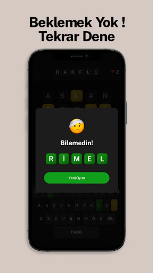You don't need to wait 24 hours to find new words. With HARFLE, you can continue your word guesses for free and unlimited. LETTER was developed by a team of word game and puzzle enthusiasts. We know how frustrating it can be to wait to find new words. Are you ready to play with us?