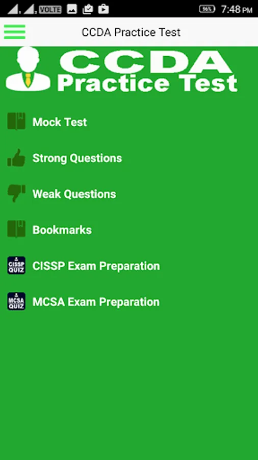 2. Depends up on your quiz this CCDA Exam Prep app automatically counts your weak number of questions and strong questions.
