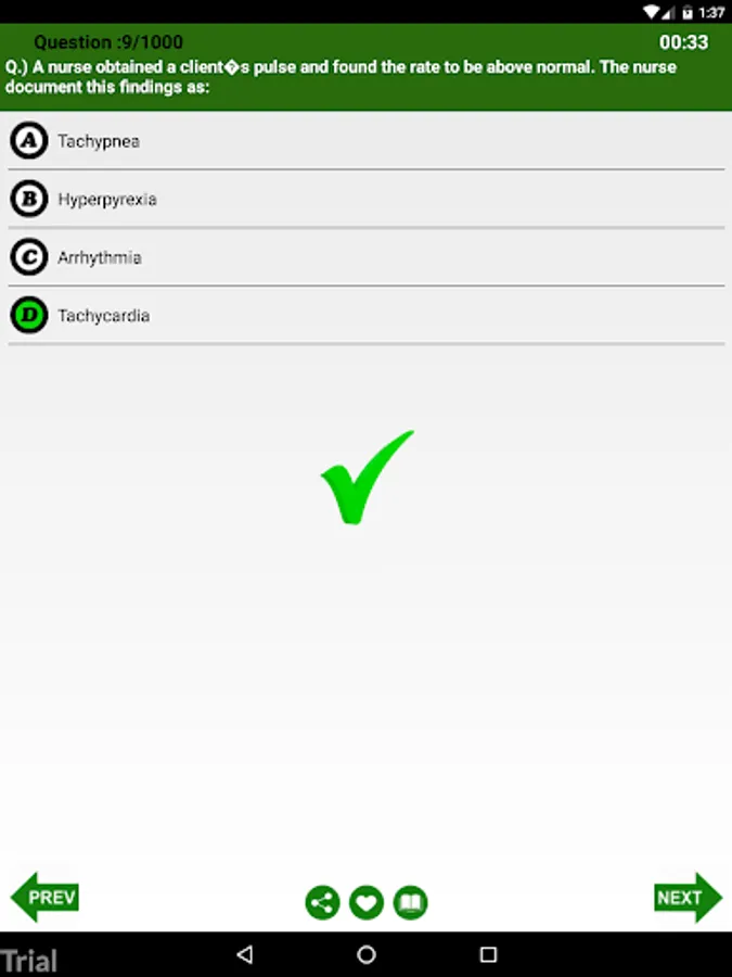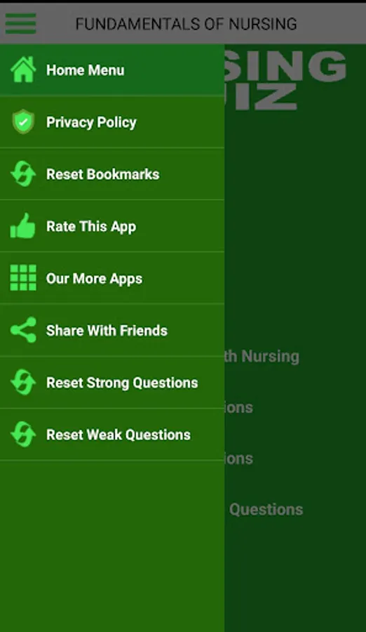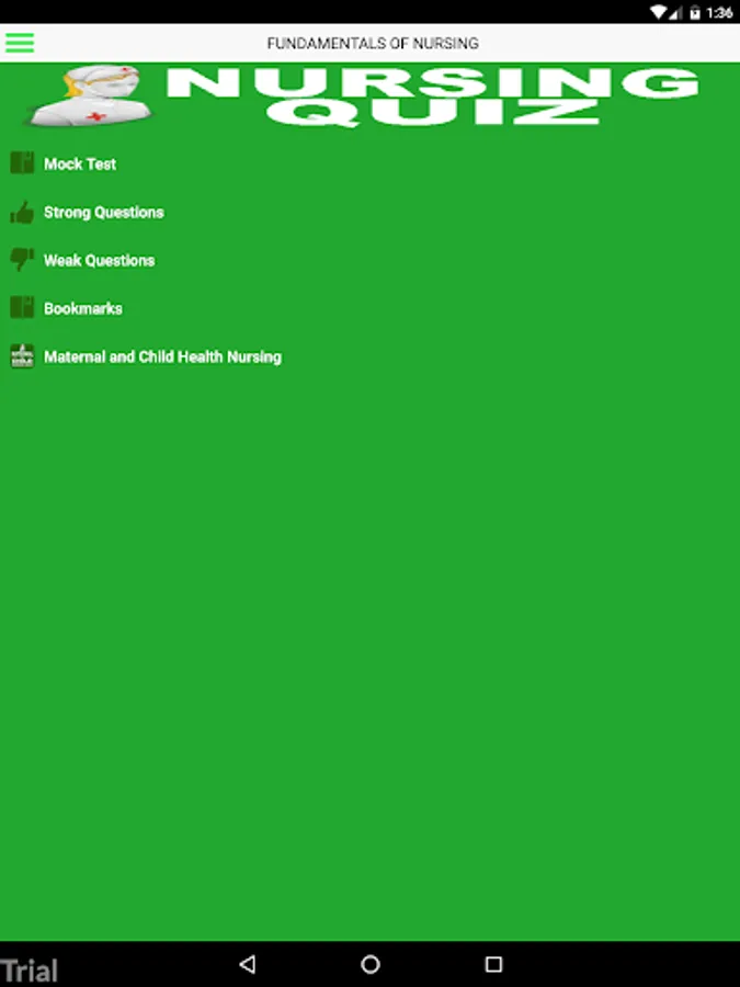 * Depends up on your quiz this app automatically counts your number of Weak & Strong questions in the taken Nursing Quiz.