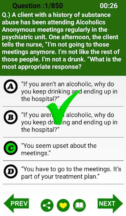 * Depends up on your quiz this app automatically counts your number of Weak & Strong questions in the taken Mental Health & Psychiatric Nursing Quiz.