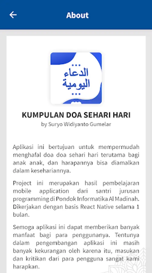 With this application, it is hoped that people who may not know the daily prayer that they often do can become aware of and practice the prayer.