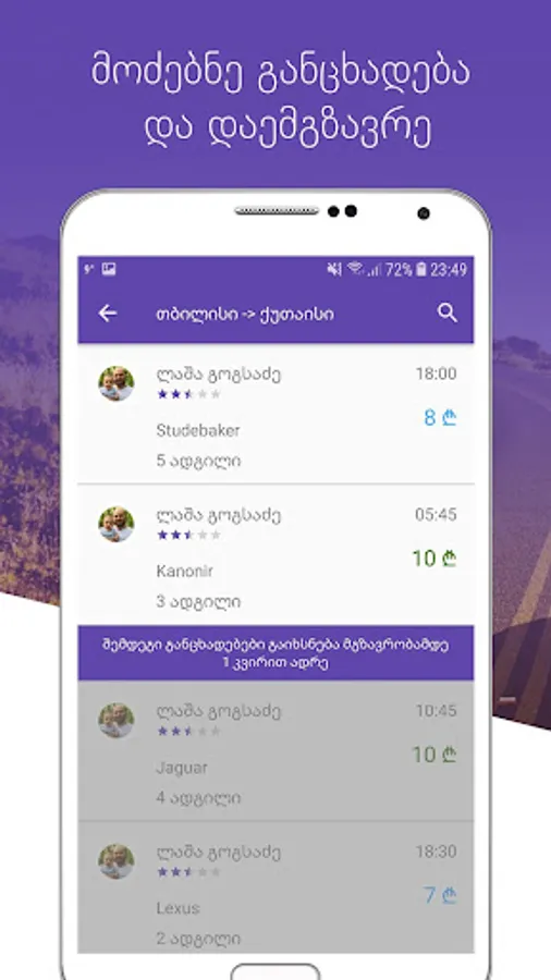 Check the ads of people driving same destination as you