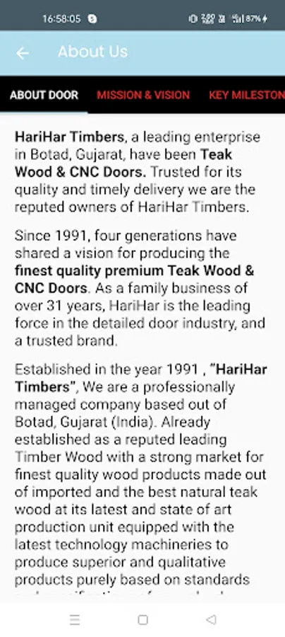 Since it’s inception in 1991 for timber products, the company has been delivering and solutions for retail and institutional clients . We believer in continuous innovation through technological advancement and strive offering the customers the best product at best price.