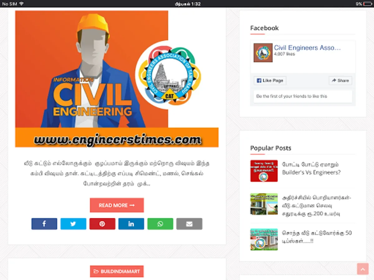 Engineers Times is mainly for Civil Engineers, It Contains articles about Construction related workers and their oriented issues that occurs in our surroundings .Engineers Times Covers types of topics such as Engineers related issues, Construction ,Civil Engineering, Construction Oriented issues and Legal problems, How to Get Civil Engineers License, Government Contract License ,FIV MIV License etc….