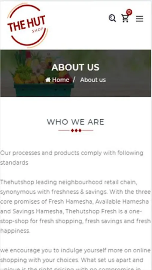 The huts hop leading neighborhood retail chain, synonymous with freshness & savings. With the three core promises of Fresh Hamesha, Available Hamesha and Savings Hamesha, The hut shop Fresh is a one-stop-shop for fresh shopping, fresh savings and fresh happiness.