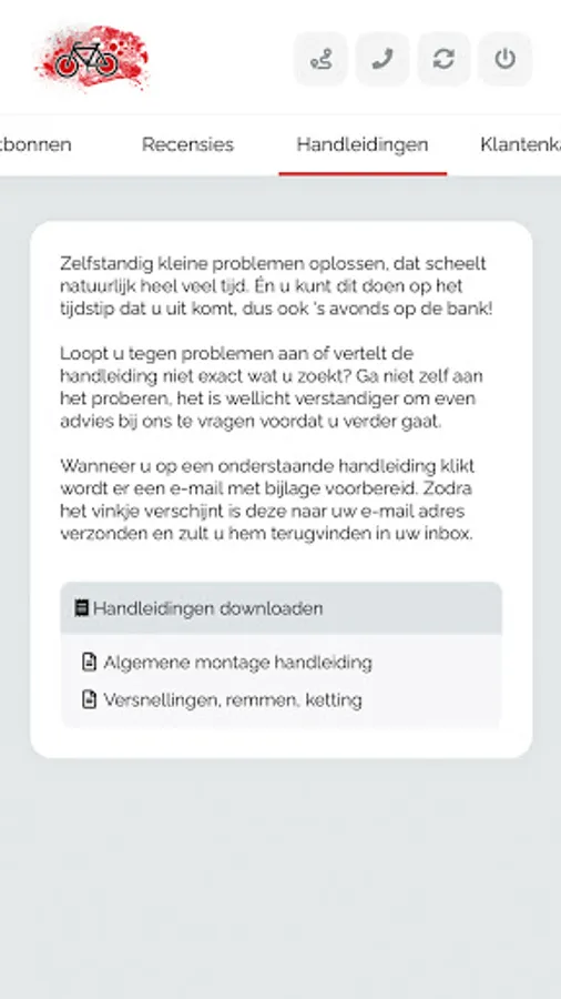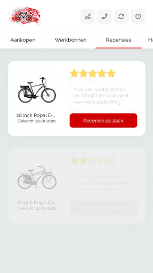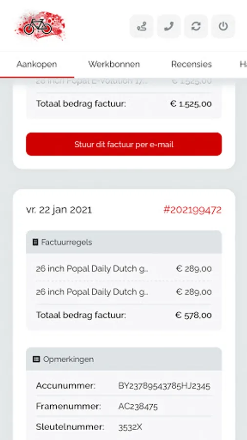 With the app and the loyalty card you have a powerful combination ... View all your purchases, frame and key numbers and download your invoices, including invoices from the past! You also keep an overview of all your repairs and maintenance, you can download manuals and write reviews about the products you have purchased.