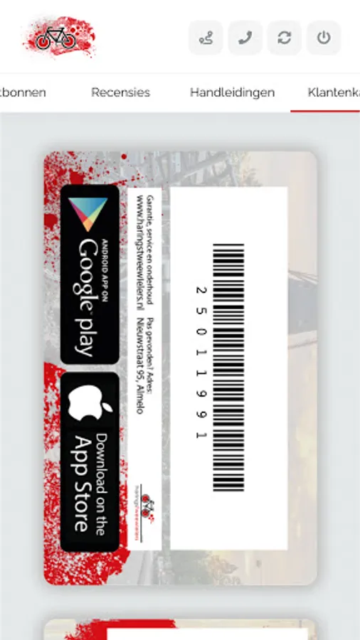 This app works in conjunction with the special Harings Tweewielers loyalty card. No customer card? You can always use our free cycling routes around Almelo!