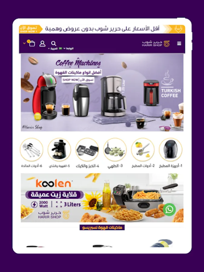 Harir Shop is an electronic shopping platform for the most important products and goods for the kitchen and home, to be accessible to everyone in the Kingdom of Saudi Arabia. Where the store's goods meet all tastes and needs due to the diversity of international brands. This makes Harir Shop the first destination for those who love to own the latest gadgets and modern products from everywhere.