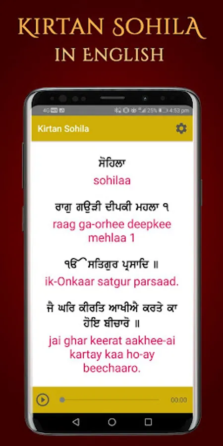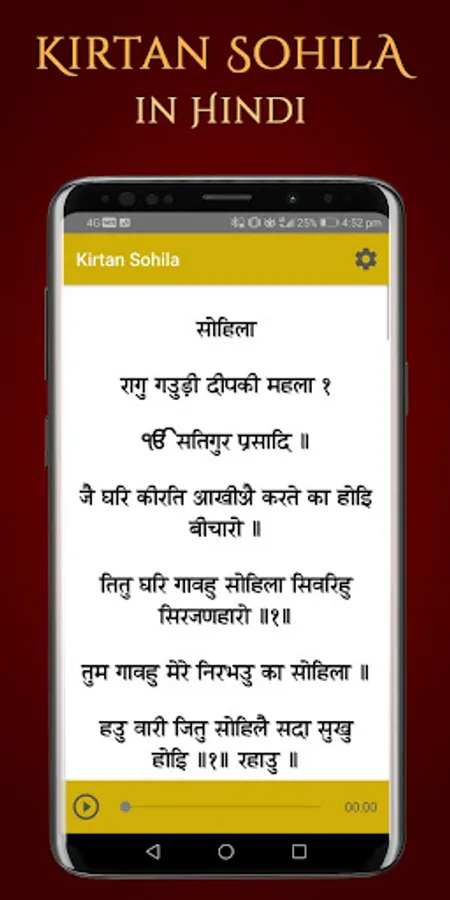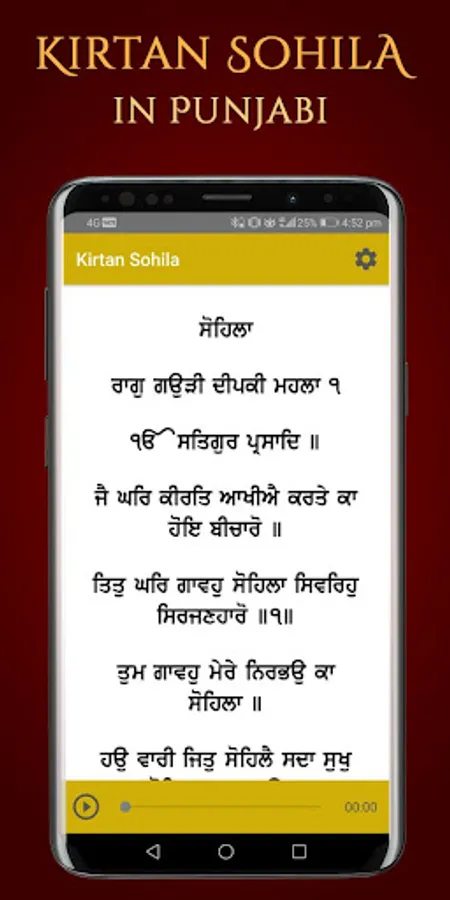 Kirtan Sohila Path App lets you read and listen to sohila sahib in Hindi, Punjabi or English and can read meaning of paath while listening to Kirtan Sohila Path Audio. We hope that you will find app useful and will use it daily nitnem the path in punjabi (nitnem audio). Kirtan Sohila Path in Punjabi app provides you read with listen to Kirtan Sohila Paath with Audio on your mobile.