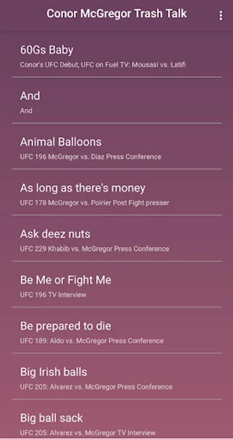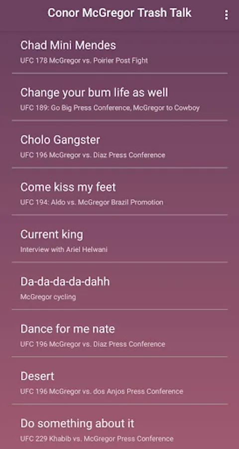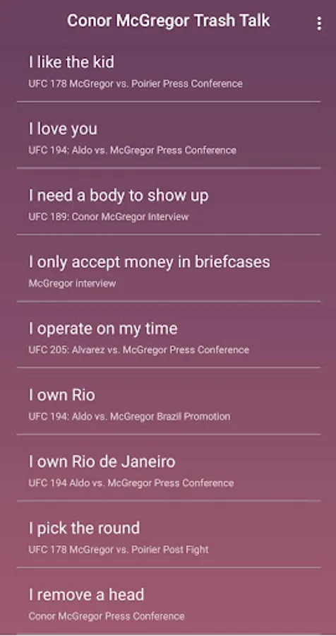 * This is the largest collection of Conor Mcgregor Trash Talk that you'll find on the internet.