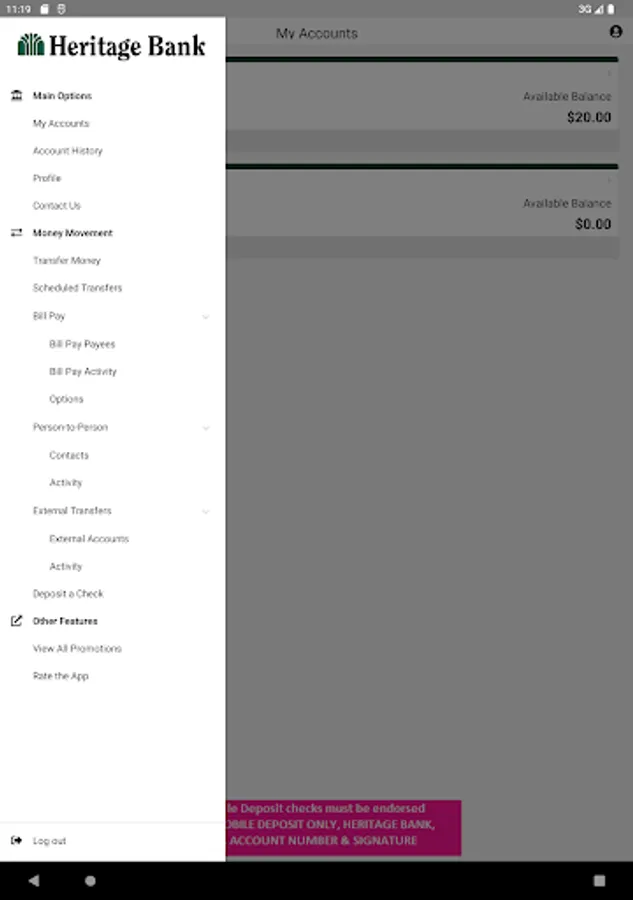 - You must be currently enrolled in our Internet Banking product to access Mobile Banking. Fill out an Internet Banking Enrollment application at www.bankonheritage.com