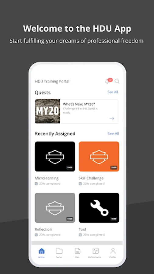 Harley-Davidson University is an accessible version of HDU’s learning management system designed to deliver engaging, easy to comprehend, actionable training materials. The HDU app was created to provide Harley-Davidson sales professionals, dealers & partners, regular updates for new product features, customer profiles, retail best practices, helpful hints, job aids, etc.