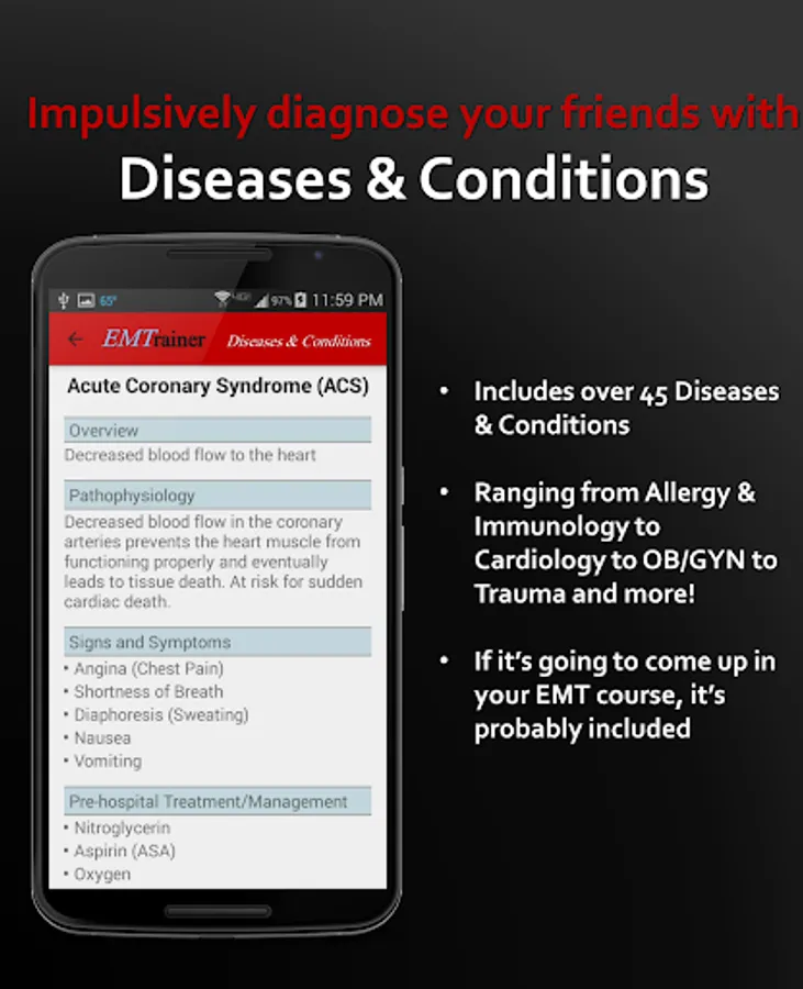 • Impulsively diagnose your friends on that 13 hour road trip with dozens of Diseases & Conditions