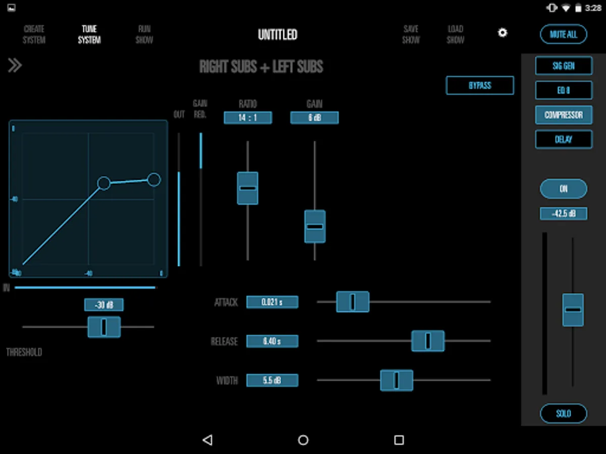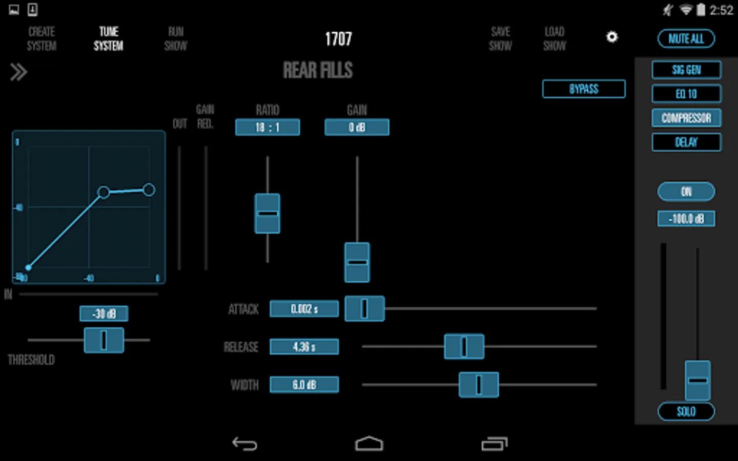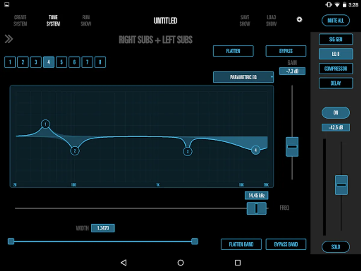 Each loudspeaker offers 20 bands of parametric EQ, compression, up to 1 second of delay, a signal generator, input mixing, amplifier monitoring, and 50 User Presets.