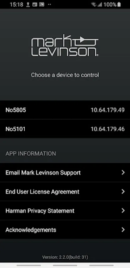Remotely control your Mark Levinson 5000 series device using your Android phone or tablet. Connect wirelessly using your home network, providing feedback from your device and eliminating any line-of-sight issues present with infrared remote control.