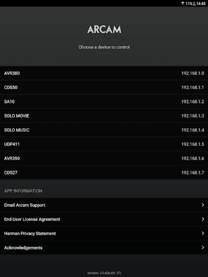 Remotely control your Arcam device using your Android device. Connect using your home network, providing feedback from your device and eliminating any line-of-sight issues present with infrared remote control.