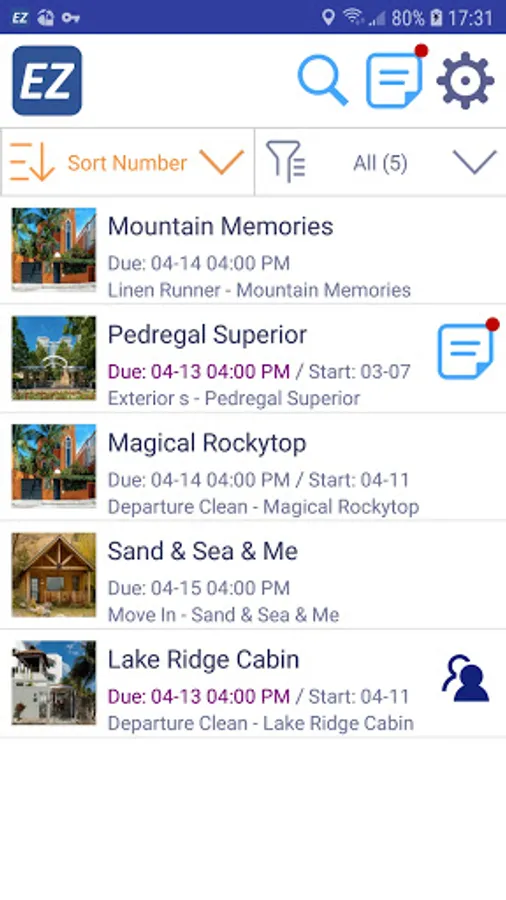 The EZcare (EZ Inspections) app lets you route your stops, view order information, instructions and property photos, and complete checklists with photos and videos. The app also allows field staff to report urgent issues in the middle of cleaning or inspection, send estimated completion time to the office, pause and resume work, scan inventory items, collect signature from residents, upload invoice or timesheet, and communicate with your team via in-app messaging.