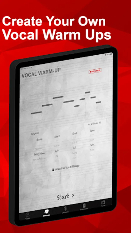 A new feature released < User-Definable Vocal Warm Up > - For all the singers, for the first time, you can create your own signatured vocal warm up and sing along with note guidance!