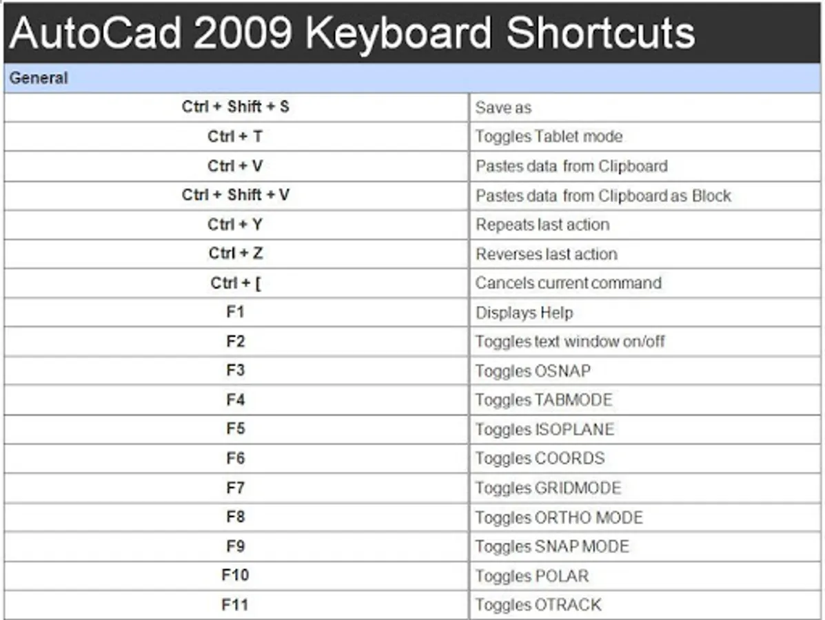 - autocad 2009 shortcut keys
