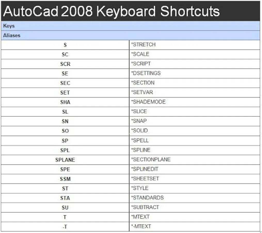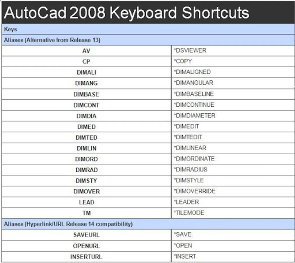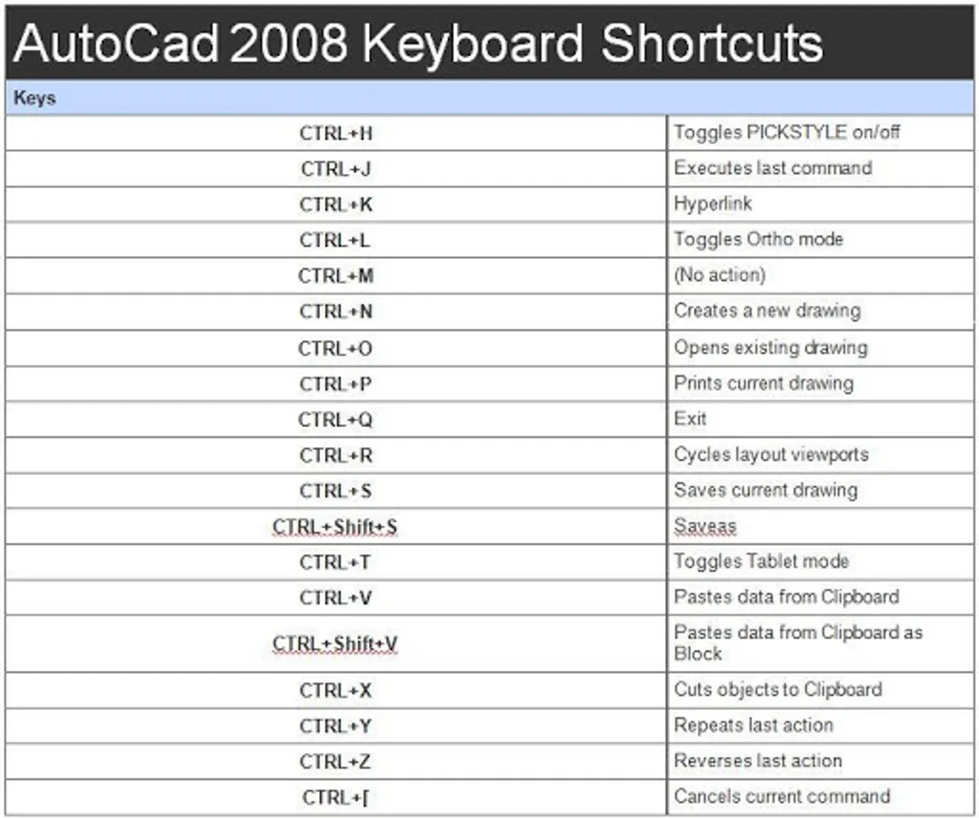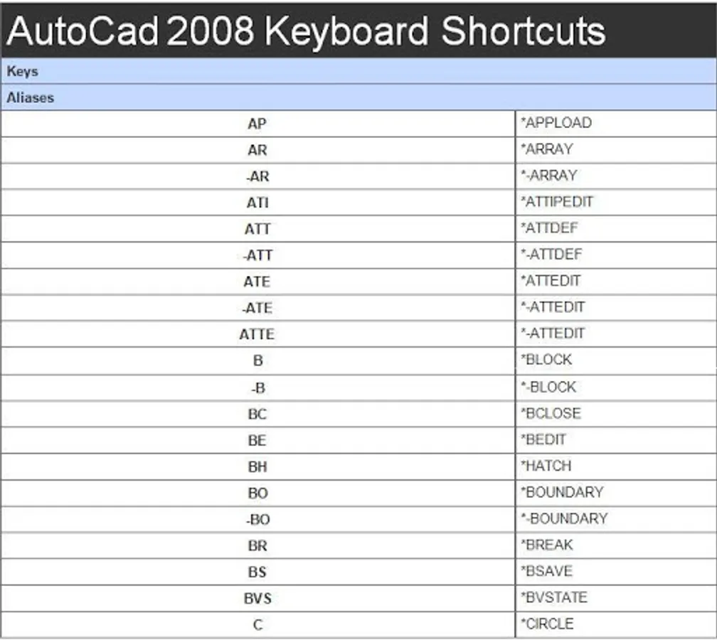 - autocad 2008 shortcut keys